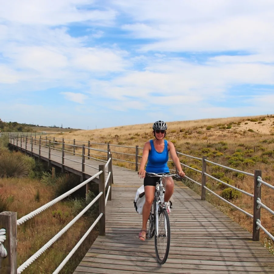 Beginnen Sie Ihren Tag mit der Erkundung von Tavira, einer der schönsten und typischsten Städte der Algarve. Die heutige Etappe führt nach Cabanas de Tavira, wo Sie entlang dem Naturparks Ria Formosa radeln. Wenn Sie durch Cacela Velha fahren, können Sie die islamische Kultur spüren. Besuchen Sie die historische Kirche und geniessen Sie die fantastische Aussicht auf die Küste. Ein Höhepunkt des heutigen Tages ist der Weg durch den Pinienwald neben dem Strand von Monte Gordo und durch den Dünenwald von Vila Real de Santo António bis zum Fluss Guadiana, wo die natürliche Grenze zwischen Portugal und Spanien verläuft. Auf dem Weg zurück nach Tavira passieren Sie die Stadt der Erleuchtung, Vila Real de Santo António, wo Sie die Stadtpfarrei und den Markt mit vielen regionalen Produkten entdecken können. Die Rückreise nach Tavira kann mit dem Zug verkürzt werden.