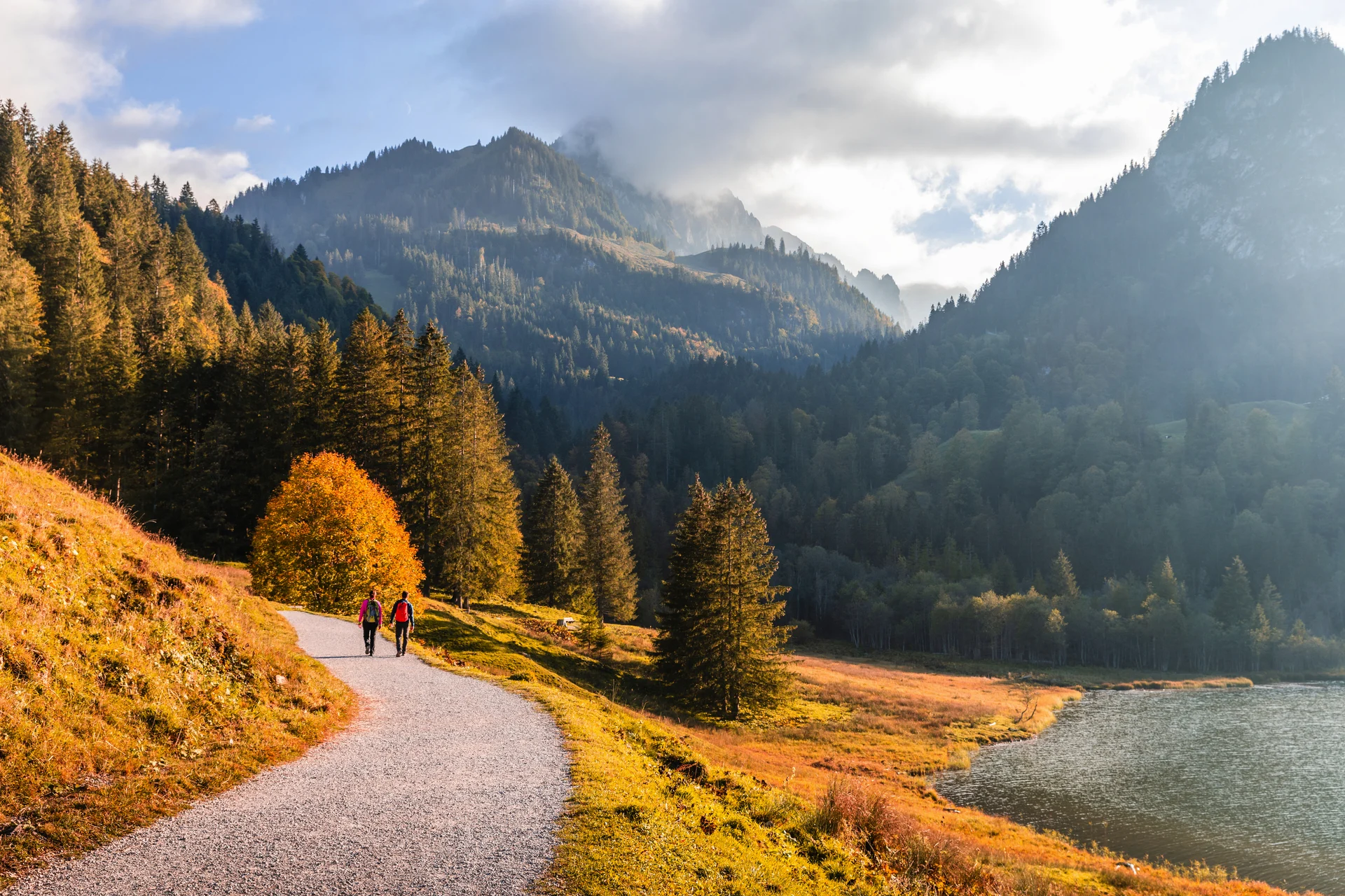 Erstes Highlight dieser Wanderreise ist der dunkle Schwarzsee. Die Legende besagt, dass dieser seine Farbe hat, weil ein Riese einst seine Füsse darin gewaschen hat. Bei Ihrer Wanderreise funkelt Ihnen dieses Gewässer türkis oder tiefblau entgegen. Weiter geht es durch die wilde Jaun-Schlucht nach Gruyère, das von einem vieltürmigen Schloss bewacht wird. Danach vorbei an Alpkäsereien hoch zum Moléson und über saftig-grüne Wiesen in den Wintersportort Les Paccots. Eine Wanderung an die Ufer des Genfersees schliesst diese Reise ab.