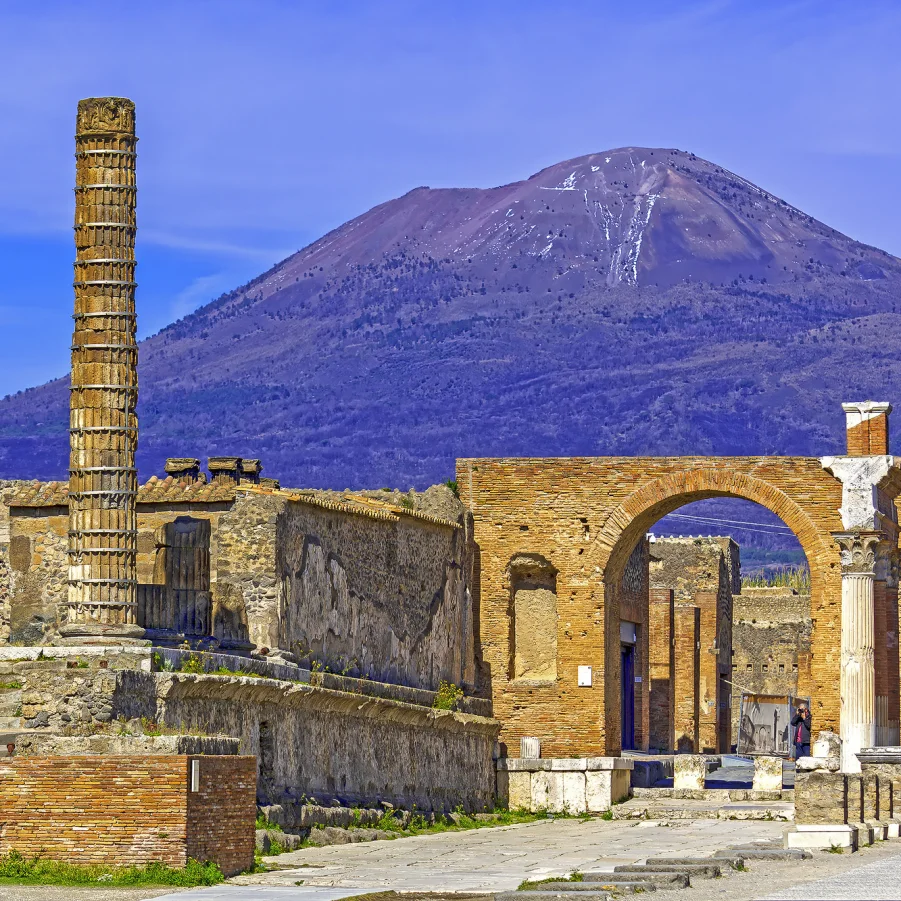 Wir wandern zum aktiven Vulkan Vesuv. Mit einem Bergführer umrunden wir den Krater und wagen einen Blick in den tiefen Schlund. Am Nachmittag erkunden wir die antike Stadt Pompeji, die beim verheerenden Ausbruch im Jahr 79 n. Chr. verschüttet wurde. → Wz 2½ Std. I Besichtigung 2 Std.