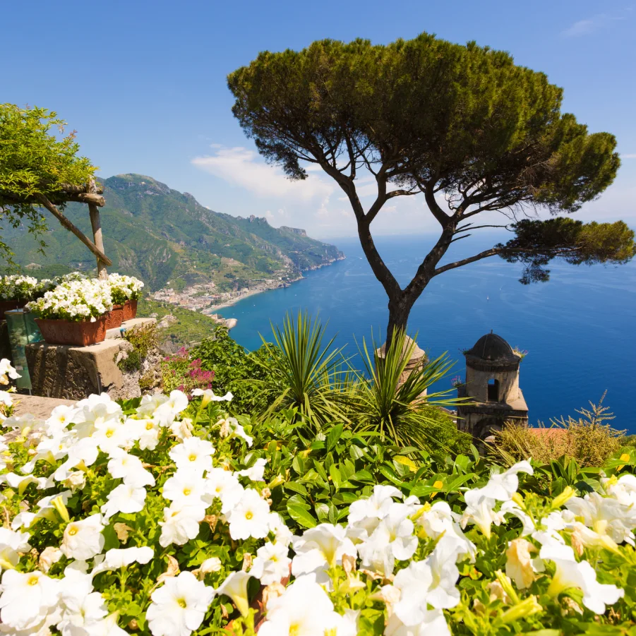 Ausflug ins elegante Ravello, tronend 350 Meter über der Küste. Wir besichtigen die Villen Rufolo und Cimbrone mit ihren prachtvollen Gärten. → Besichtigung 2 Std.