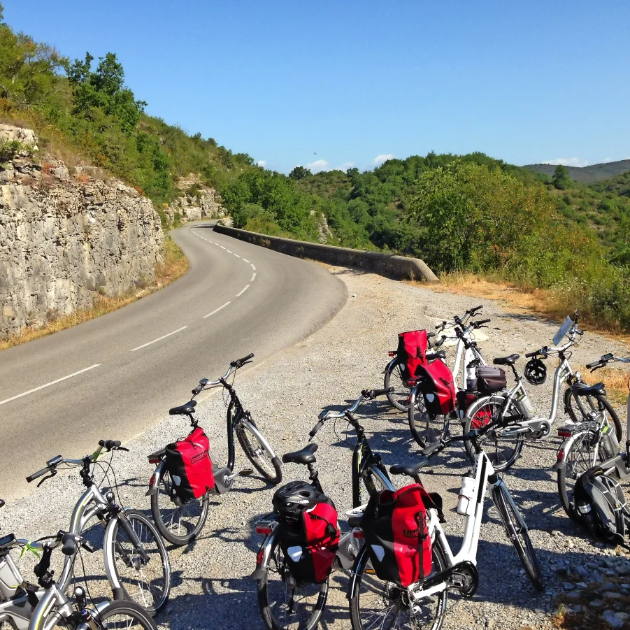 Unsere heutige Velotour beginnt bei den beeindruckenden Labyrinthfelsen im Nationalpark Cévennes. Von hier aus fahren wir durch die alte, teils verwaiste Bergbau- und Industriestadt Bessèges. Über schöne Velowege und ehemalige Bahntunnel fahren wir zurück zu unserem Hotel in Vallon Pont d'Arc.
