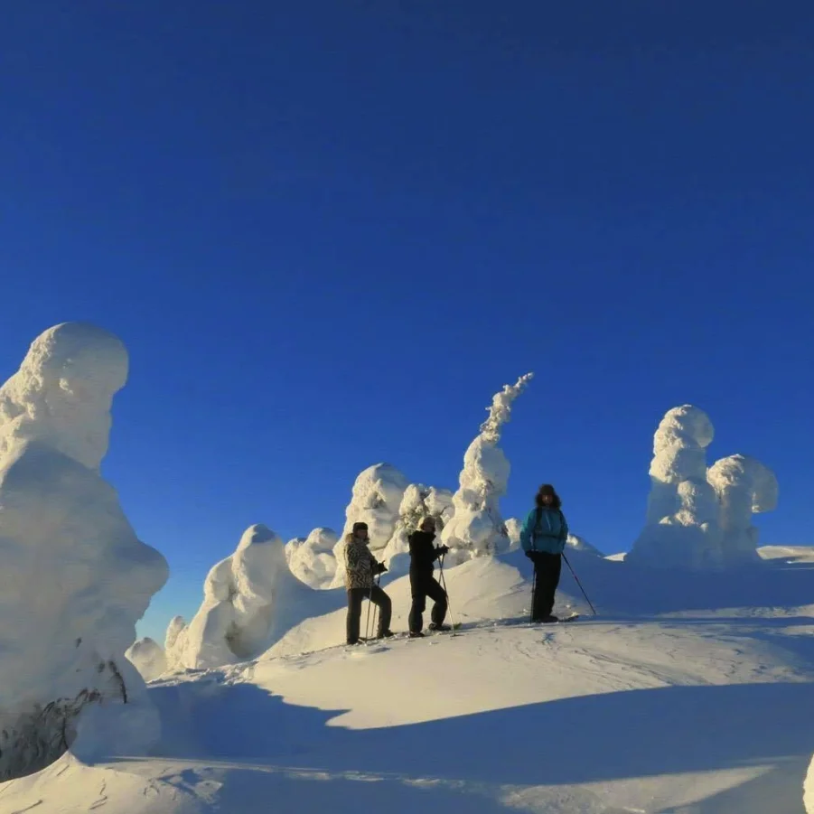 Eingepackt in warmer Winterkleidung führt uns unsere erste Schneeschuhwanderung durch verschneite Wälder und auf den Pfaden der Rentiere. Bei einer Pause wärmen wir uns mit einem heissen Getränk auf. Am späteren Nachmittag Fahrt ins winterliche Ruka und Abendessen auswärts. → Wz 3 Std.
