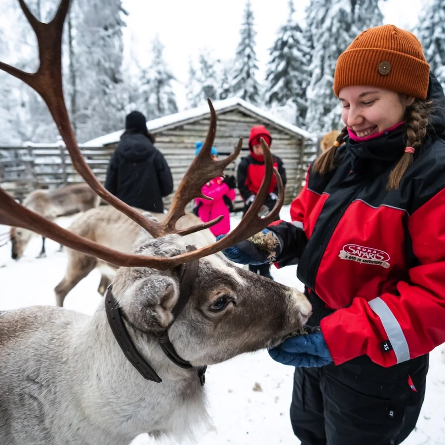 Heute erleben wir Rentiere aus nächster Nähe und erfahren Spannendes über sie. Sie haben die Gelegenheit die Rentiere von nächster Nähe aus zu beobachten und sie sogar zu füttern. Das Highlight des Tages wird die Rentierschlittenfahrt sein. In einer Kota, eine traditionell finnische Grillhütte aus Holz, werden Sie mit traditionellem, süssem Gebäck und frischem Kaffee verwöhnt.