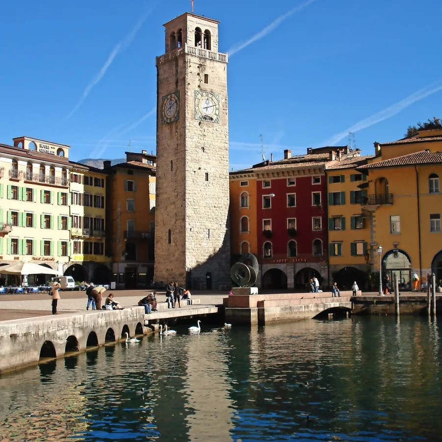 Die Etsch begleitet Sie bis nach Rovereto, der Stadt mit dem berühmten Museum für zeitgenössische Kunst. Von dort ab verlassen Sie das Tal und radeln mit einem kurzen Anstieg auf den San Giorgio-Pass, von wo aus die atemberaubende Abfahrt beginnt, die Ihnen einen spektakulären Ausblick auf den Gardasee und die Stadt Torbole schenkt. Ab Riva del Garda geht es mit der Fähre in Richtung Süden des Sees.