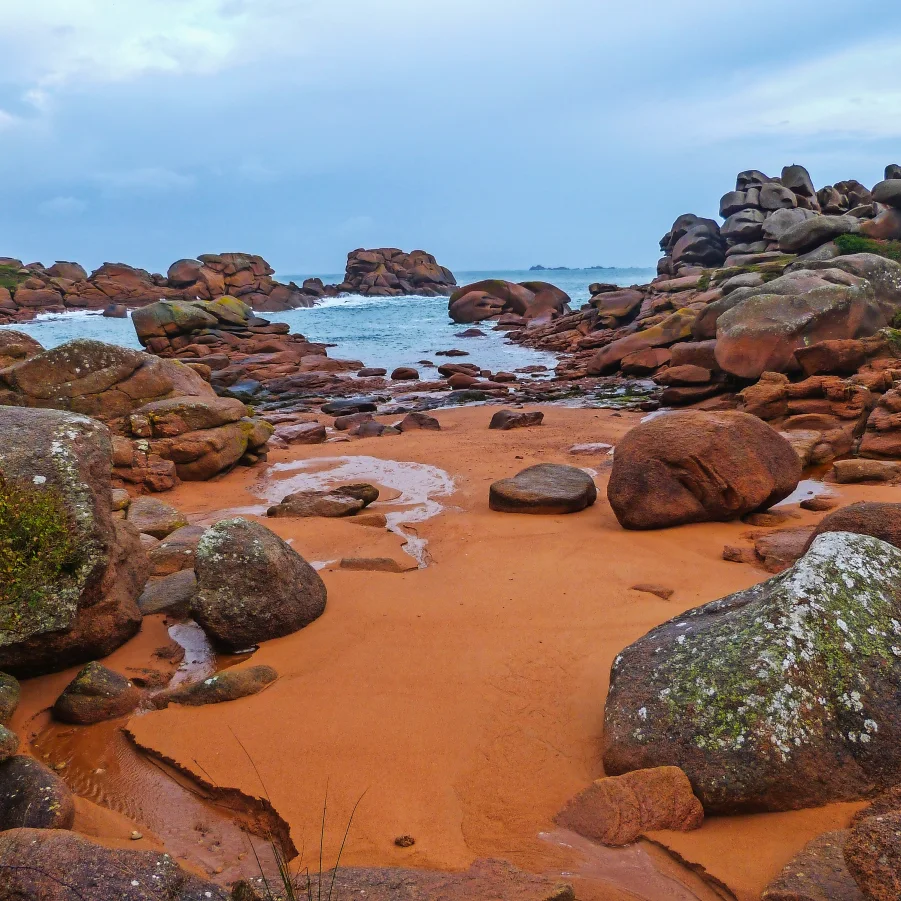 Nach einem kurzen Transfer nach Plougrescant wandern Sie am Ufer des Guindy entlang und geniessen Highlights wie die «Pointe du Château» und die «Stätte der Gouffre». Die Route führt zwischen einsamen Stränden und kleinen Buchten zum charmanten Dorf Buguelès mit seinen kleinen Inseln, Halbinseln und Gezeitenmühlen. Nach der Überquerung der Pellinec-Bucht endet die Etappe in Port Blanc.