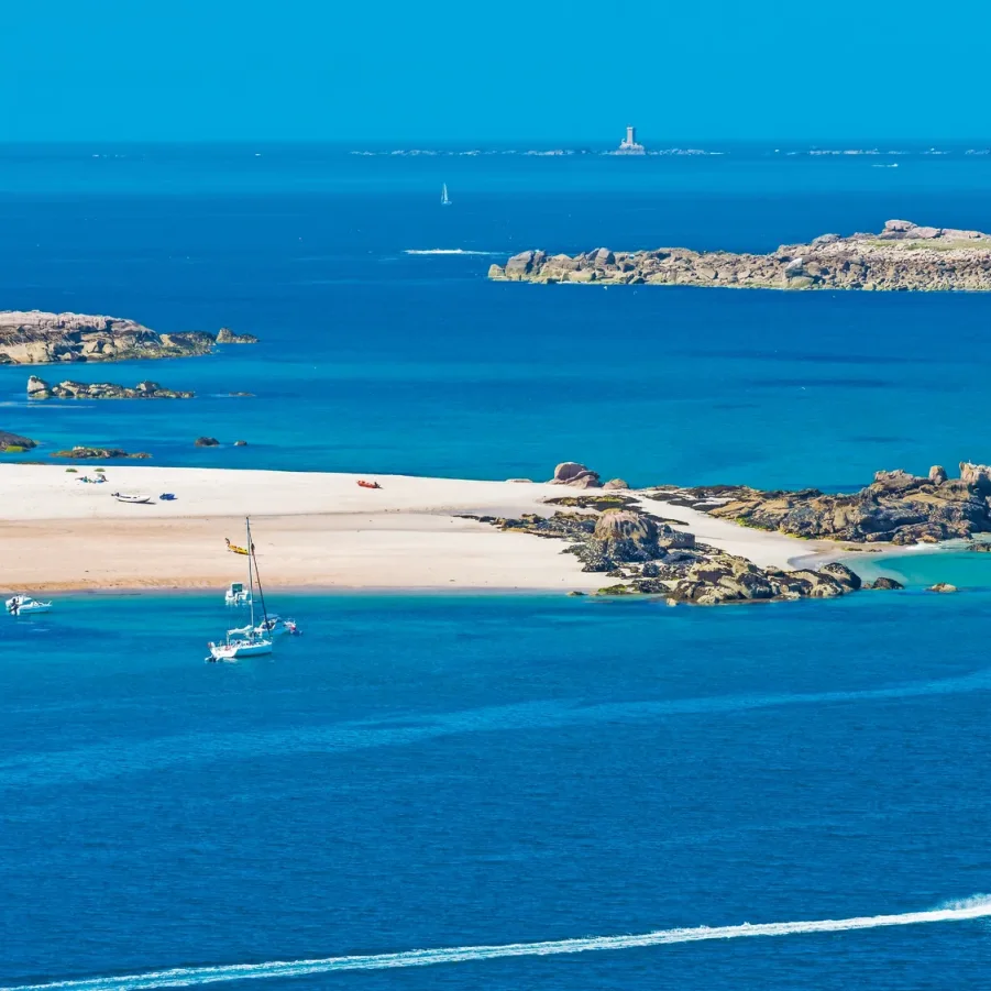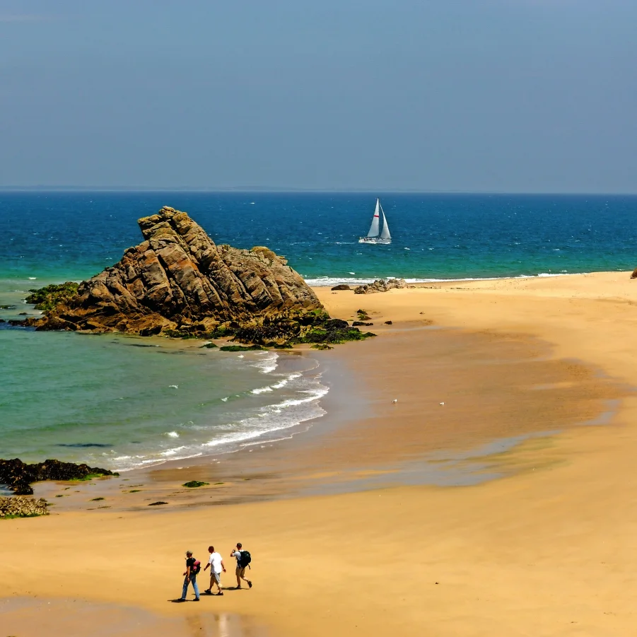 Nach dem Verlassen von Port Blanc und der «Fraueninsel», führen Sie Ihre Schritte an feinen Sandstränden entlang zum ruhigen Badeort Trévou Tréguignec. Kleine geschützte Häfen säumen den Weg nach Nantouar. Dann beginnt ein Weg im Grünen und ermöglicht es, das Dorf Louannec und seine Weiler auf kleinen Strassen und schattigen Pfaden zu entdecken. Die Wanderung endet beim Hafen von Perros. Ein zusätzlicher Spaziergang ermöglicht es Ihnen, das alte Zentrum von Perros Guirec und seine erstaunliche romanische Kirche zu besuchen.