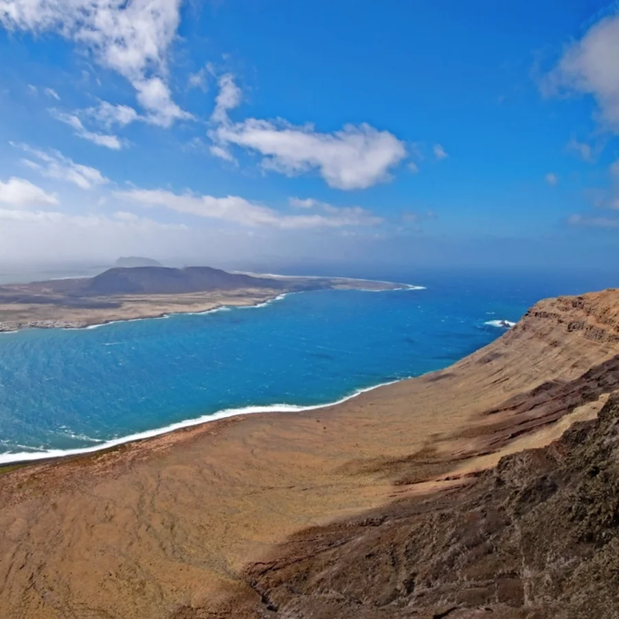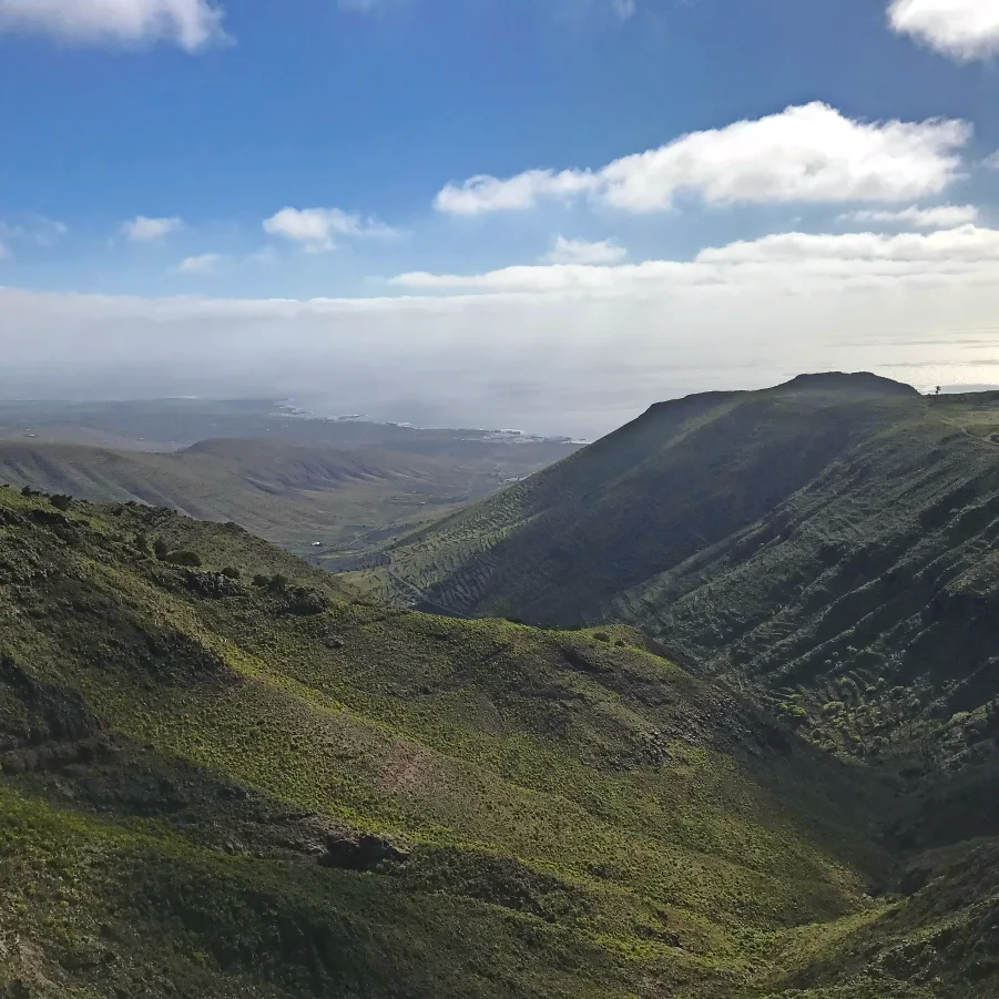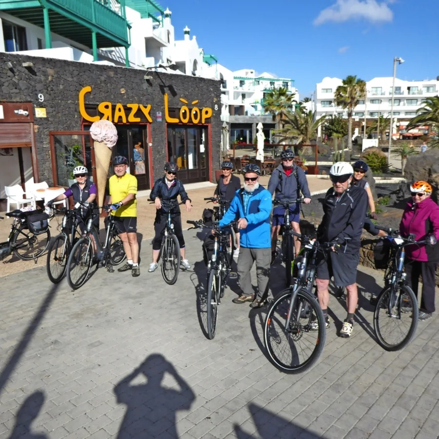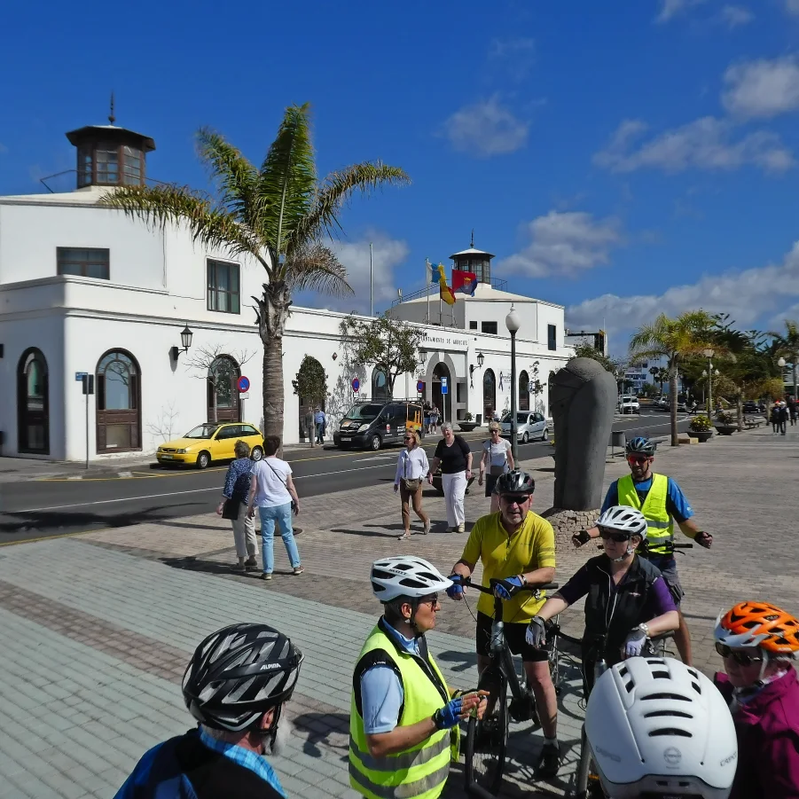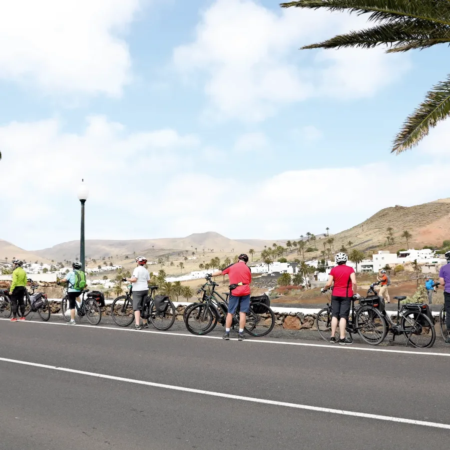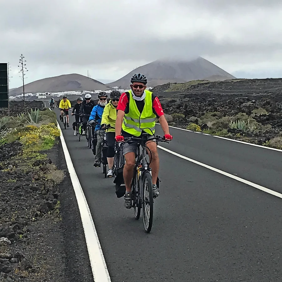 Kurzer Bustransfer. In luftiger Höhe satteln wir um und fahren mit den E-Bikes die kurvige Passstrasse hinunter nach Haria. Dort besuchen wir die Casa de Cesar Manrique, das letzte Wohnhaus von C.M. Die hügelige Topografie belohnt immer wieder mit einzigartigen Ausblicken. Auf der Fahrt zum Mirador del Rio überrascht die herrliche Aussicht auf die Nachbarinsel La Graciosa. Flotte Abfahrten führen uns nach Orzola zu unserem Mittagshalt. Nach kurzweiliger Fahrt tauchen wir ein in die Lavablasen, die «Jameos». Der Künstler Cesar Manrique erschuf ein faszinierendes Naturkunstwerk.