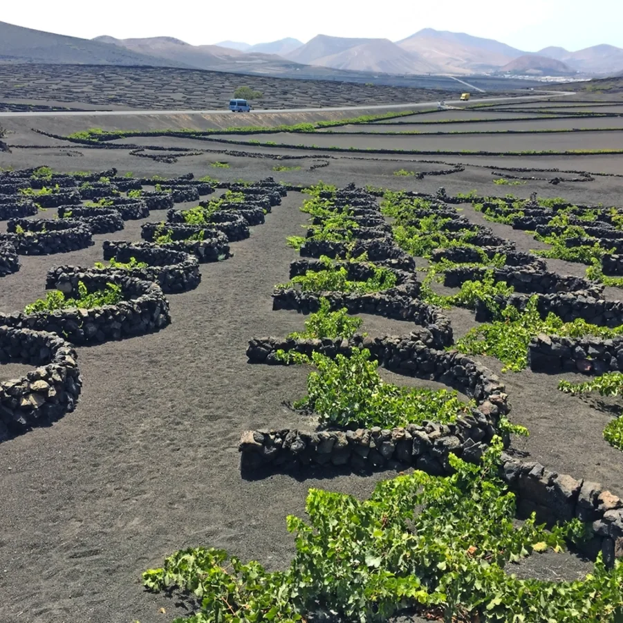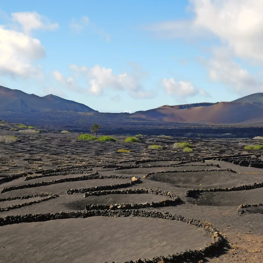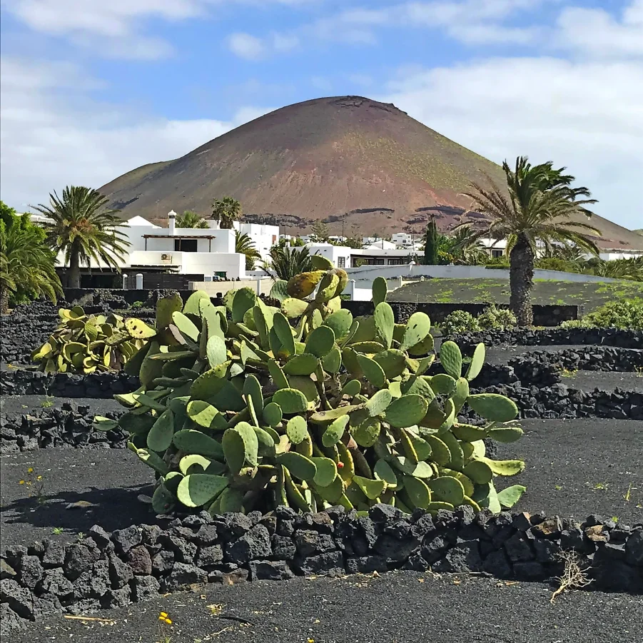 Mit dem Bus fahren wir zur Kirche Virgen del Volcano, in den Nordwesten der Insel. Dort kam es vor knapp 300 Jahren wieder zu Vulkanausbrüchen, so dass viele Einwohner der Ortschaft Timanfaya fliehen mussten. Wir fahren mitten durch diese erstarrten Lavaströme mit ihren kantigen Gesteinsformationen und besichtigen diese imposanten Feuerberge, die Montañas del Fuego. Am Meer lassen wir uns kulinarisch verwöhnen damit wir gestärkt die Schlussetappe bis zum Weinanbaugebiet La Geria doppelt geniessen können.