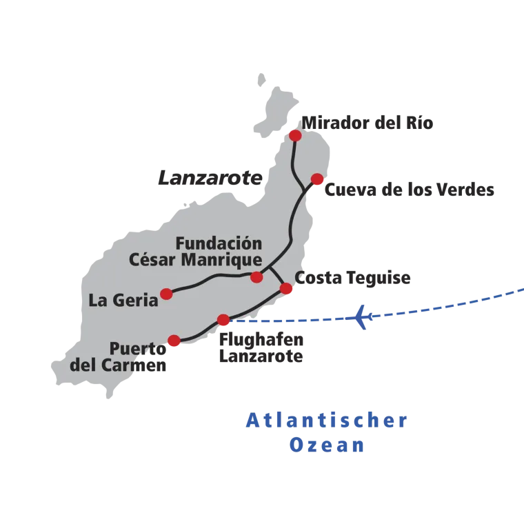 Charterflug von Zürich nach Lanzarote und Transfer nach Costa Teguise.