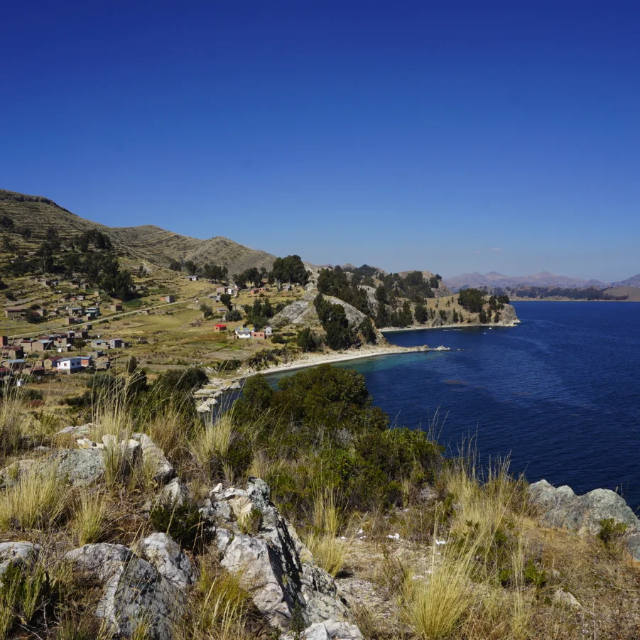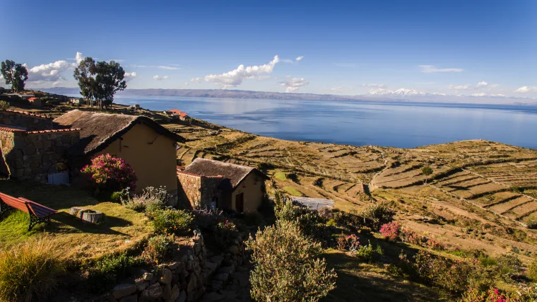 Von der Sonneninsel reisen wir zur Mondinsel und wandern durch die terrassierte Hügellandschaft zum Iñak Uyu Tempel. Weiterreise in die Andenmetropole La Paz. → Wz 2 Std.