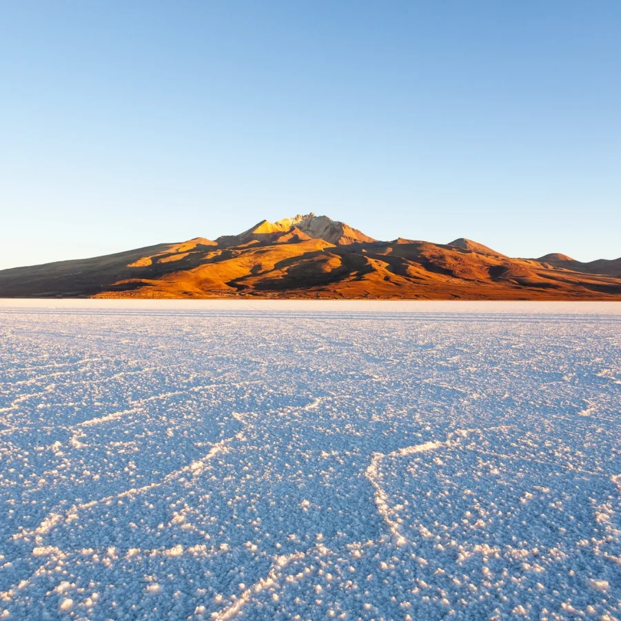 Am Fusse des Tunupa Vulkans unternehmen wir eine spektakuläre Wanderung. Der Sonnenuntergang über dem Salzmeer wird uns für immer in Erinnerung bleiben. → Wz 4 Std.