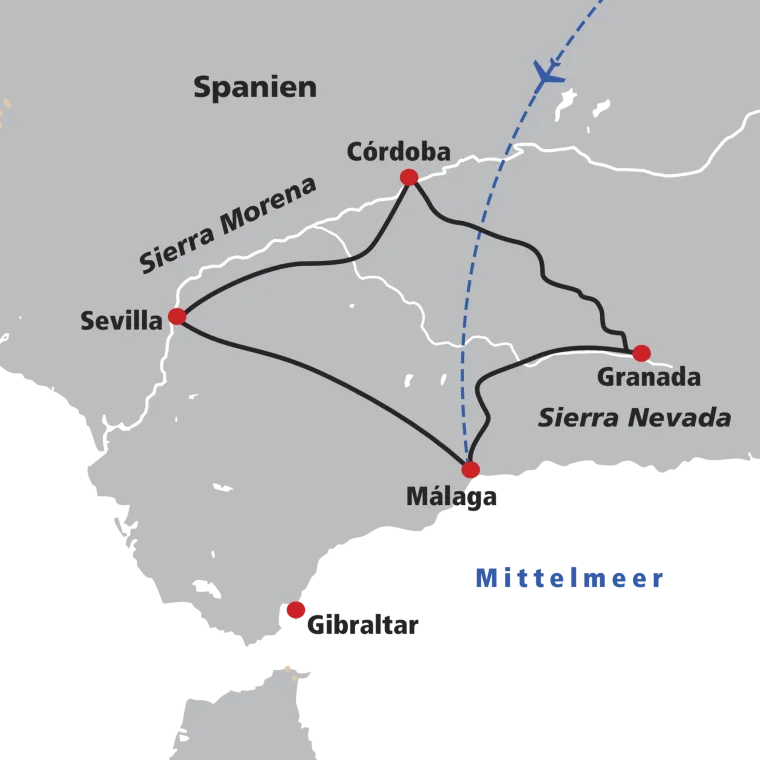 Flug von Zürich nach Malaga und Transfer nach Granada.