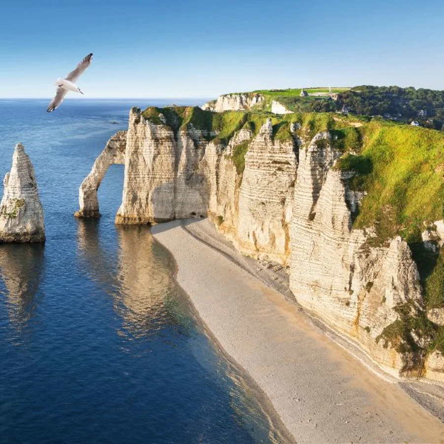 Heute erleben Sie Faszination in allen Facetten. Auf unserer Ganztagestour durch die Normandie schlagen Sie Brücken zwischen tragischer Geschichte, traumhafter Natur und traditioneller Kulinarik. Hier die Schatten des Zweiten Weltkriegs, dort Obstgärten und Strände im Sonnenlicht, da Cidre und Käse von Weltruf. Zwischendurch geniessen Sie die Gelassenheit einer normannischen Mittagspause in Bayeux. Alternativ dazu können Sie nachmittags den Badeort Fécamp entdecken. Natürlich charmant und als ehemalige Stadt der Herzöge reich an Architektur — wie das Meisterwerk Palais Bénédictine.