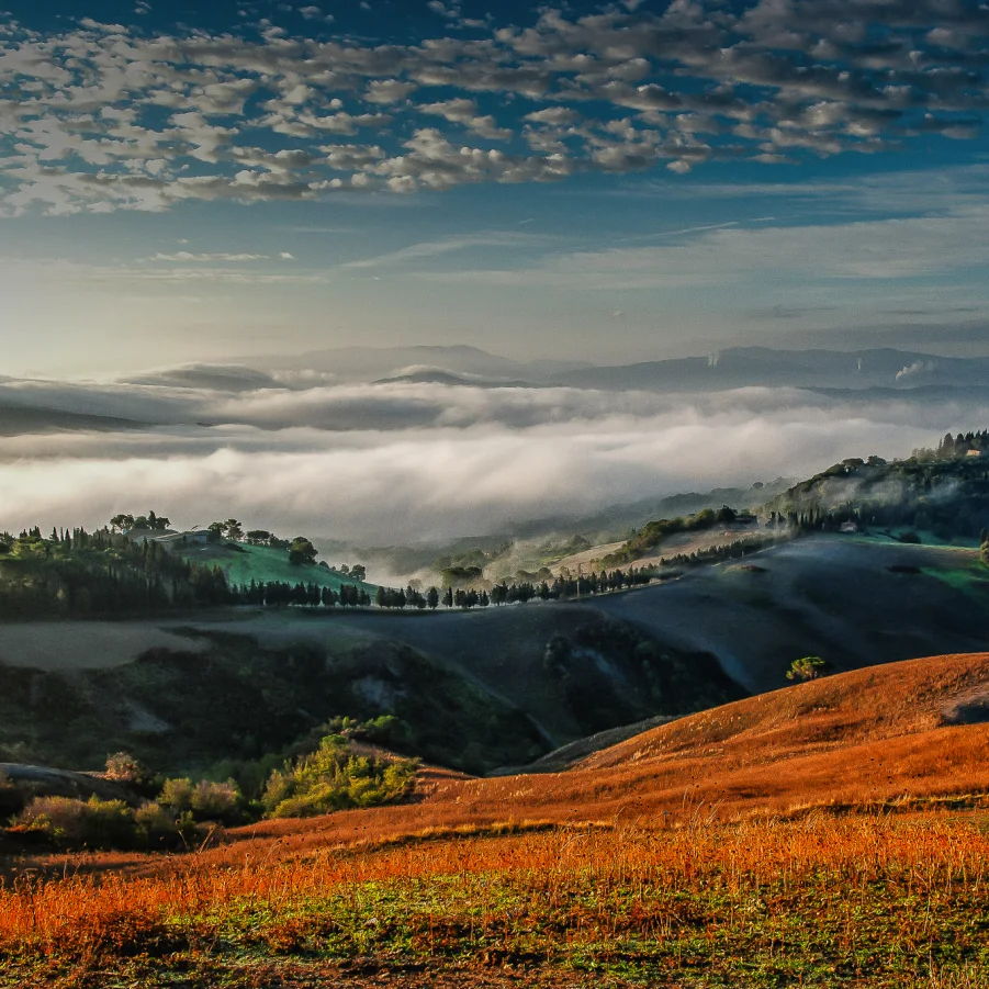 Für Naturfreunde und Gourmets ist die Toscana ebenso ein besonderer Ort wie für Fotografen. Gerade im Frühling bringt die Pracht der bunten Blumen und weit geschwungenen, sattgrünen Hügel die Landschaft in eine ganz besondere, markante Stimmung. Beim Schlendern durch historische Städte und heimelige Dörfer beeindrucken historische Bauten und der Gleichklang des Alltagslebens. Es ist ein Genuss, die malerischen Motive fotografisch festzuhalten. Besonders am Morgen und im späten Licht des Abends lassen sich gekonnt wunderbare Stimmungen gestalten. In dieser Jahreszeit sorgt der sanfte Nebel oft für eine ganz besondere Atmosphäre. Wie besuchen auf unserer Reise das Val d´Orcia mit seinen sanften Hügeln und Zypressenalleen, das stolze Siena, das historische San Gimignano, Pienza und Asciano. Im Kloster Monte Oliveto Maggiore geniessen wir die Stille und und die historischen Fresken und Malereien. Ausgangspunkt unserer täglichen Exkursionen ist unser Hotel «Palazzo San Niccolo» nahe Siena. Hier finden wir auch Zeit und Raum für Bildbesprechungen und geniessen die Atmosphäre des mittelalterlichen Hauses. Der Rhythmus der Fotoreise ist vor allem von den Wetterverhältnissen und Lichtbedingungen geprägt.
