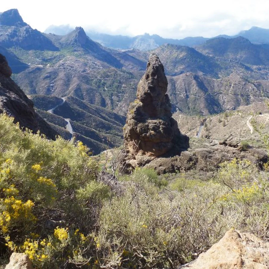 Eine technisch einfache Wanderung, die auf einer ruhigen Asphaltstrasse mit herrlichen Ausblicken beginnt (erste 2 km), dann aber auf historischen Fusswegen hinauf in den immergrünen Wald Pinos de Galdar und dann über Cruz de Tejeda hinunter zum höchstgelegenen Dorf der gesamten Insel führt: Tejeda, wunderschön an einem terrassierten Hang mit Blick auf Roque Nublo und Bentayga gelegen. Die Anstiege sind teilweise lang und steil, vor allem der Abschnitt durch den Pinienwald. Der Abstieg erfolgt allmählich über einen steinigen Fussweg, der im Zickzack entlang der Hänge und durch einige Obst- und Gemüsegärten führt. Sie können die Route verkürzen, indem Sie das Taxi bitten, Sie am Start 2 km weiter bergauf zu fahren. Der einzige Boxenstopp auf dem Weg ist in Cruz de Tejeda, wo es 2 Restaurants und einen schicken Parador gibt.