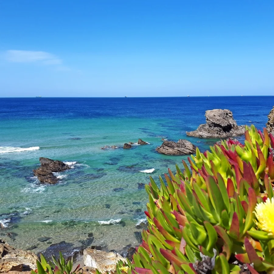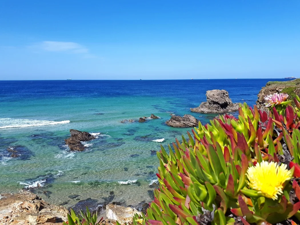 Sie starten den Tag in Vila Nova de Milfontes und fahren durch die ruhige Landschaft von Rogil, bekannt für ihre weiten Felder und den ländlichen Charme. Weiter geht es entlang malerischer Klippen und Strände bei Zambujeira do Mar bis nach Odeceixe – einem idyllisch am Fluss gelegenen Ort, der die Grenze zwischen Alentejo und Algarve markiert. Die Route folgt der Küste und führt Sie schliesslich nach Aljezur, das im Naturpark Costa Vicentina liegt. In dieser Stadt vereinen sich natürliche Schönheit und Geschichte: Entdecken Sie gepflasterte Strassen, weiss getünchte Häuser und die Überreste einer maurischen Burg, die das Tal überragt. Jeder Abschnitt der Strecke begeistert mit ruhiger Landschaft und verbindet auf besondere Weise die Reize der Küste mit dem reichen kulturellen Erbe der Region.