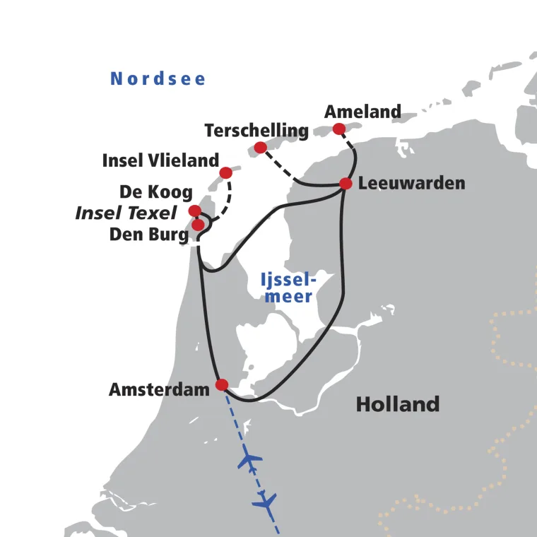 Per Fähre und Zug zurück nach Amsterdam und Rückflug oder individuelle Verlängerung.