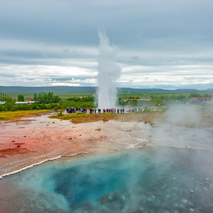 Heute erwarten uns beeindruckende Naturwunder in Kombination mit kurzen Wanderungen: der Nationalpark Thingvellir, das geothermische Gebiet Haukadalur mit seinen Geysiren und der eindrückliche Wasserfall Gullfoss. Unterwegs machen wir einen Stopp in der Nähe von Fludir, wo wir in einem der ältesten Freibäder, umgeben vom Dampf der heissen Quellen, das echte Island erleben.→ Wz 3 Std.