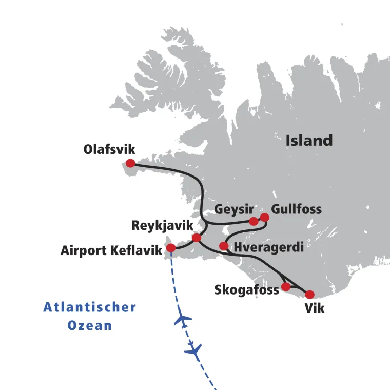 Flug nach Keflavik und Transfer.