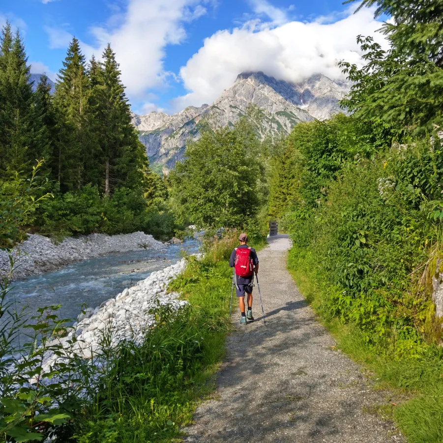 Heute folgen Sie der Saalach zurück ins Salzburger Land. Sie wandern vorbei am Saalachsee und immer tiefer hinein in die Berge. Ihr Weg verläuft teilweise direkt am Ufer der Saalach, die wildromantisch durch die Felsen fliesst.