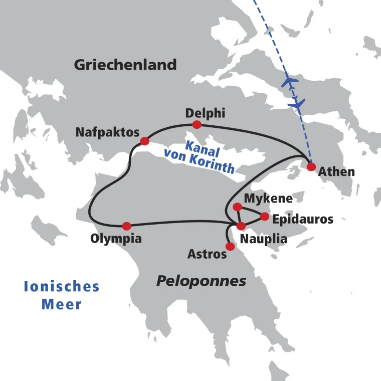 In Olympia besichtigen wir mit einem lokalen Führer die Altis mit dem gewaltigen Zeustempel, das Stadion und das neu eingerichtete Museum. Weiterreise zu unserem letzten Hotelstandort Nauplia, einer der schönsten Kleinstädte des griechischen Festlands.
