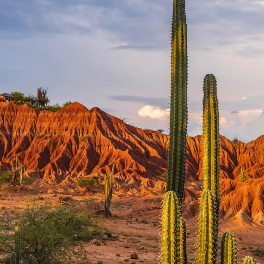 Wanderung durch die faszinierende Tatacoa-Wüste. Rote Erde, gigantische Kakteen und aussergewöhnliche Felsen prägen das Landschaftsbild. Weiterreise in die liebliche Hügellandschaft der Kaffeezone. → Wz 2 Std.