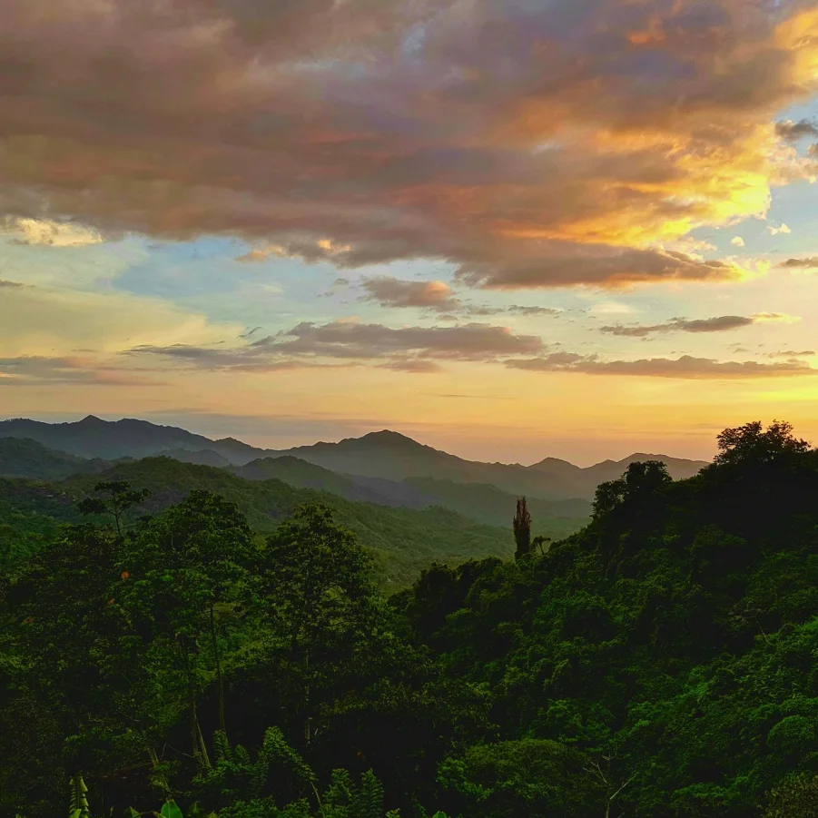 Wir wandern durch üppig-grüne Vegetation mit Farnen und Baumriesen mit Blick hinunter zum Karibischen Meer. → Wz 4 Std.