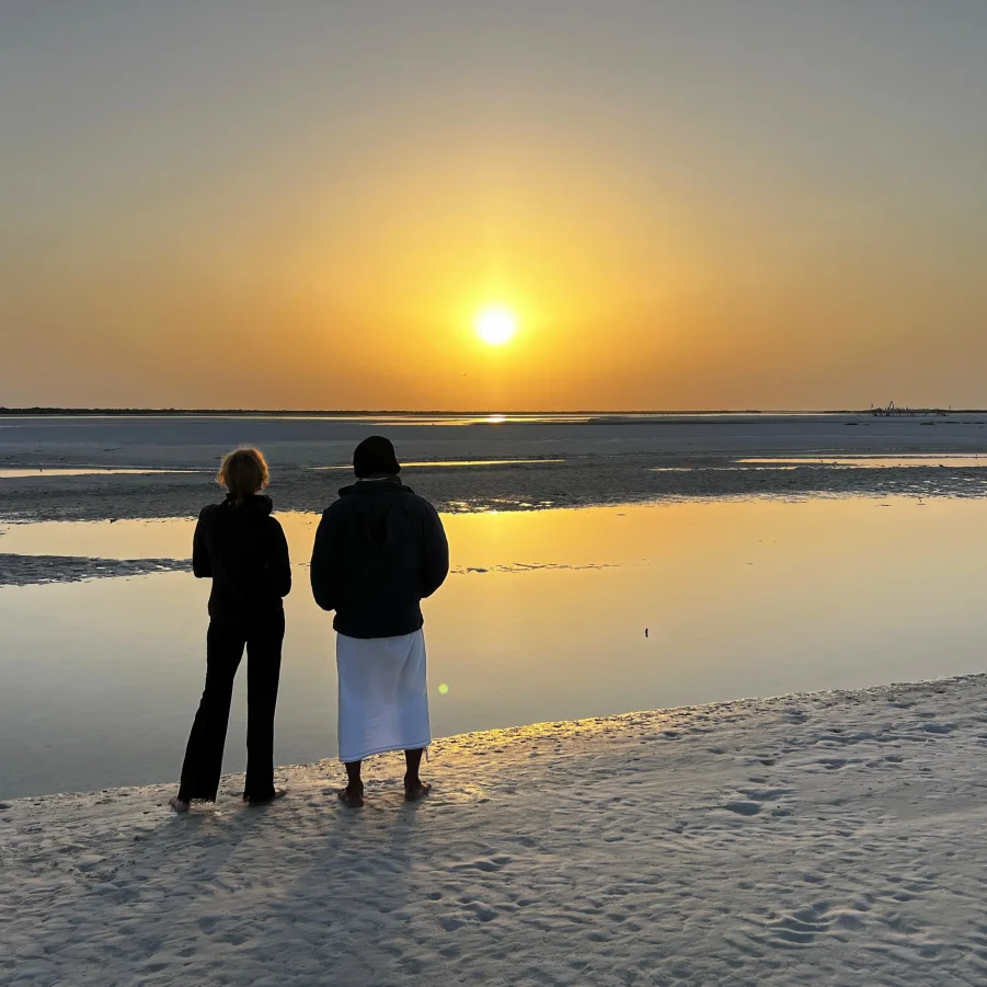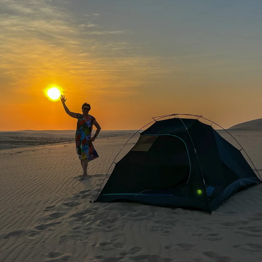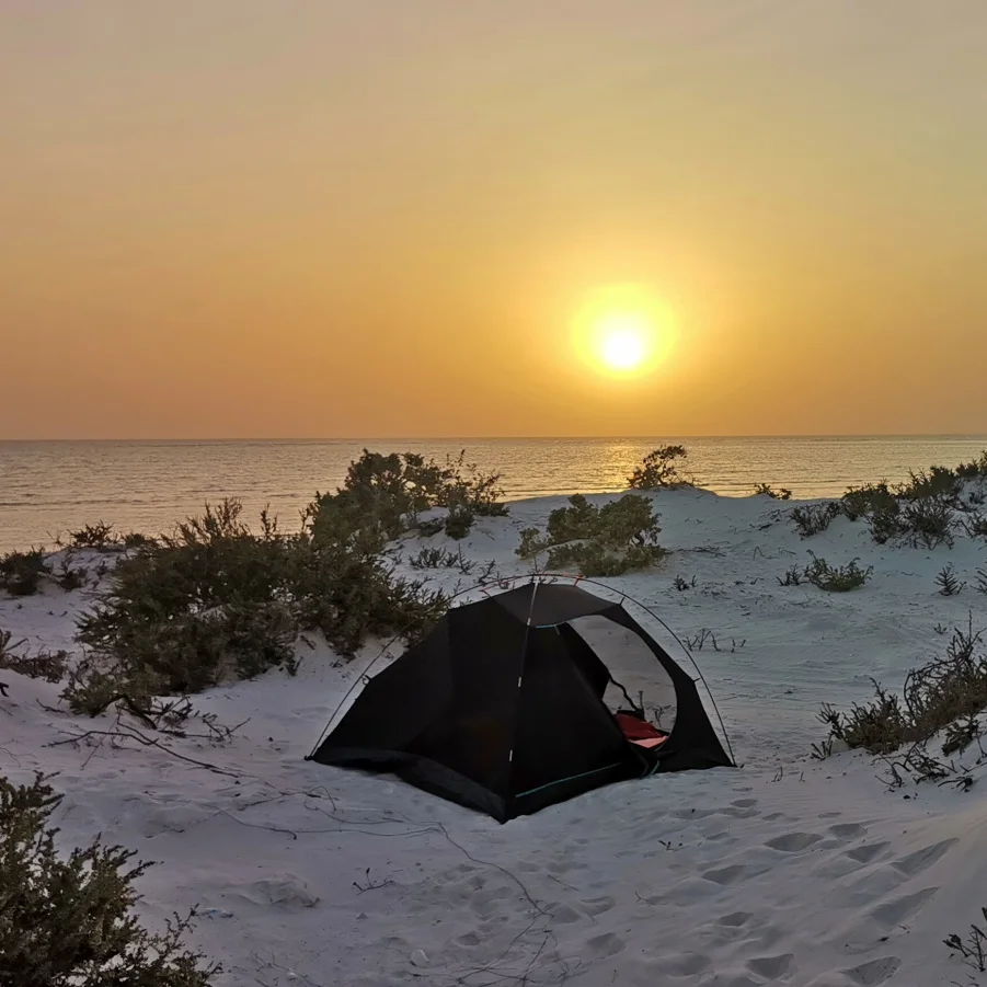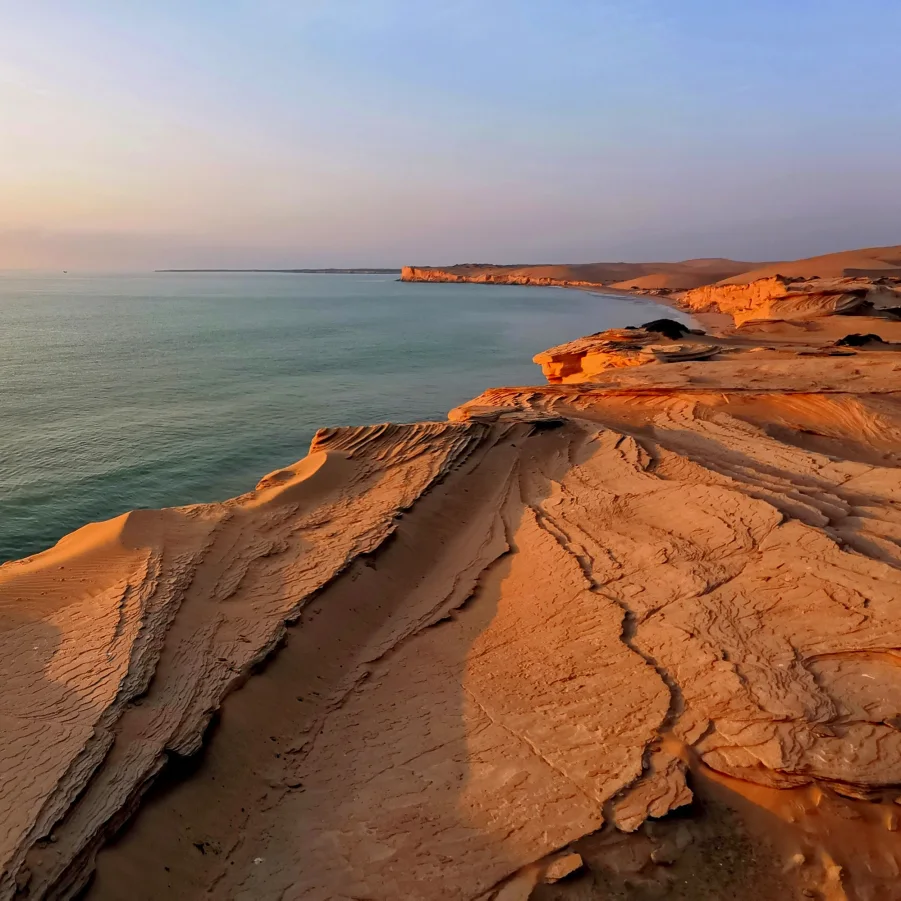 Die blendend weissen «Sugar Dunes» von al Khaluf wirken fast surreal. Nördlich davon erreichen wir eine Salzebene mit guter Chance auf Flamingos und andere Vögel. Die Fahrt durchs Feuchtgebiet zur Halbinsel Bar al Hikman erfordert Offroad-Erfahrung. Wie immer beim Zelten verwöhnt uns das Team abends mit einem köstlichen Essen unter freiem Himmel.