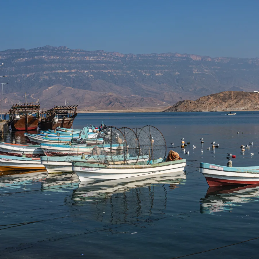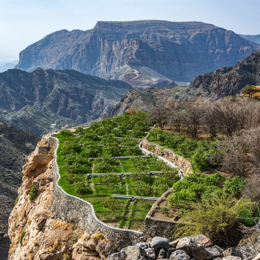 Auf dem Fischmarkt in Barka erleben wir den Reichtum der omanischen Meereswelt. Eine steile Geländefahrt bringt uns ins Bergdorf Wakan auf 1500müM, bekannt für seine terrassierten Gärten mit Granatäpfeln, Aprikosen, Datteln und mehr. Wanderung in eindrucksvollem Bergpanorama.