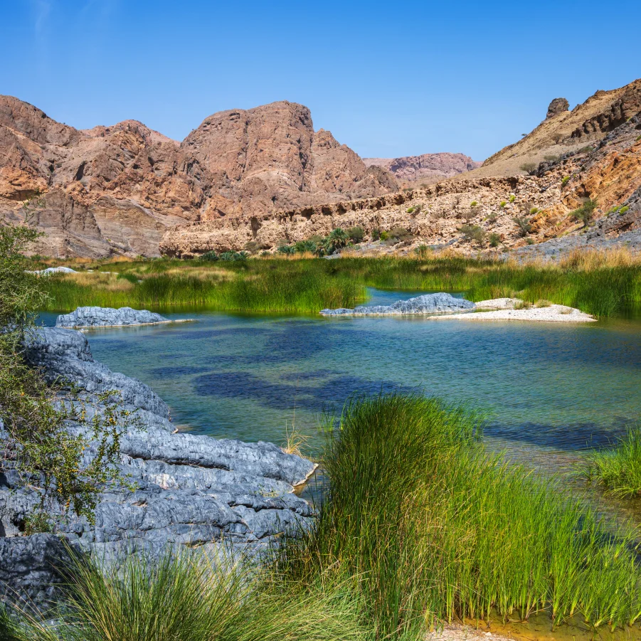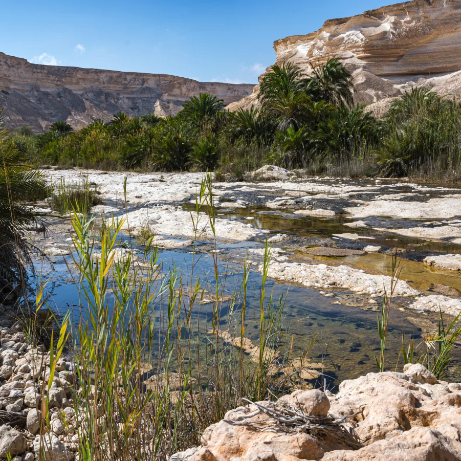 Heute wandern wir im Wadi Nakhr, wo beeindruckende Gesteinsschichten Hunderte Millionen Jahre Geschichte erzählen. Wir besichtigen den labyrinthartigen Lehmpalast von Jabrin und lassen uns im 2023 eröffneten «Oman Across Ages»-Museum mithilfe modernster Technologie auf eine Reise durch die Geschichte des Landes entführen.