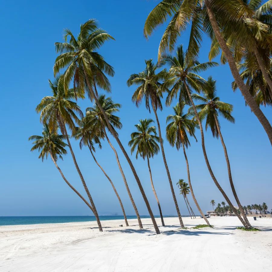Der Abschied von der Rub al Khali fällt schwer, die unvergesslichen Erlebnisse bleiben. Auf dem Weg nach Salalah besuchen wir im Wadi Dawkah das UNESCO-geschützte Gebiet der Weihrauchbäume. Unser Hotel in Salalah liegt direkt am weissen Sandstrand.