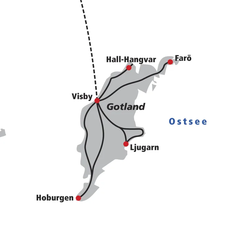 Schwedens grösste Ostseeinsel ist immer noch ein Geheimtipp und nicht nur bekannt als die Heimat von Pippi Langstrumpf und Ingmar Bergmann. Dank ihrer aussergewöhnlichen Natur, geheimnisvollen „Raukar“ Felsskulpturen, wilden Stränden und dem besten Klima Schwedens, ist es ein Traumziel mitten in der Ostsee. Wir wohnen direkt in der wunderschönen Altstadt von Visby, einer der schönsten mittelalterlichen Städte Nordeuropas. Von hier aus erkunden wir auf herrlichen Küstenwanderungen die unbändige Natur - das blaue Meer immer in Sichtweite. Elche werden wir hier keine antreffen, aber jede Menge Gotland-Schafe und eine äusserst vielfältige Vogelwelt. Im Sommer blühen überall die Rosen, bunte Blumenwiesen und rote Mohnfelder berauschen unsere Sinne und erfüllen uns mit einer traumhaften Zufriedenheit!