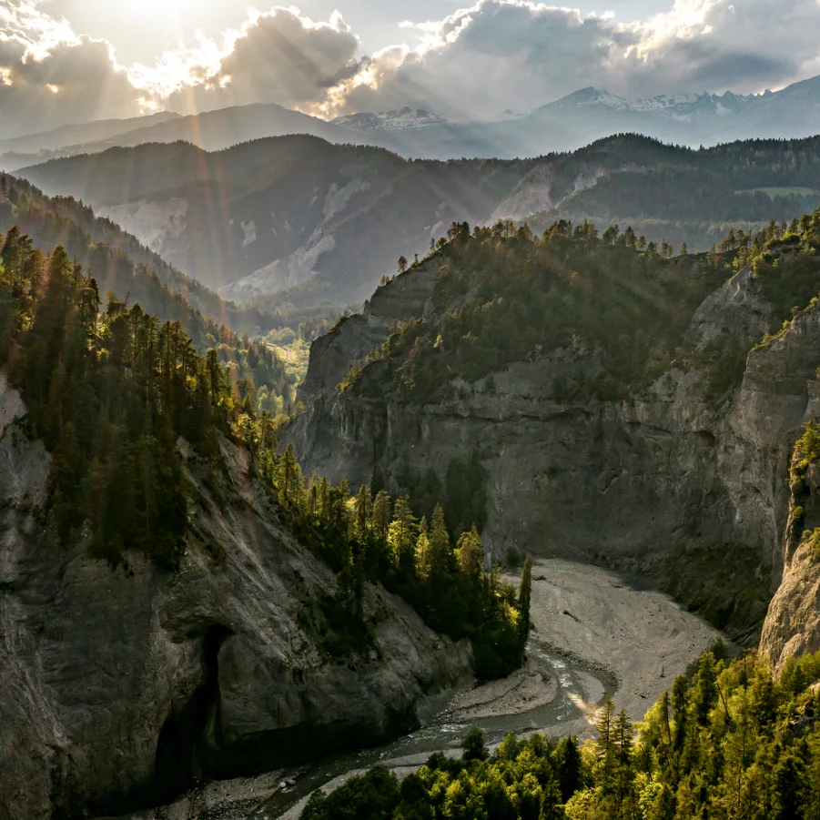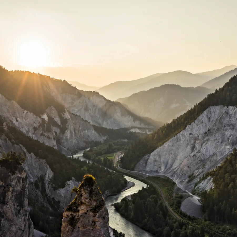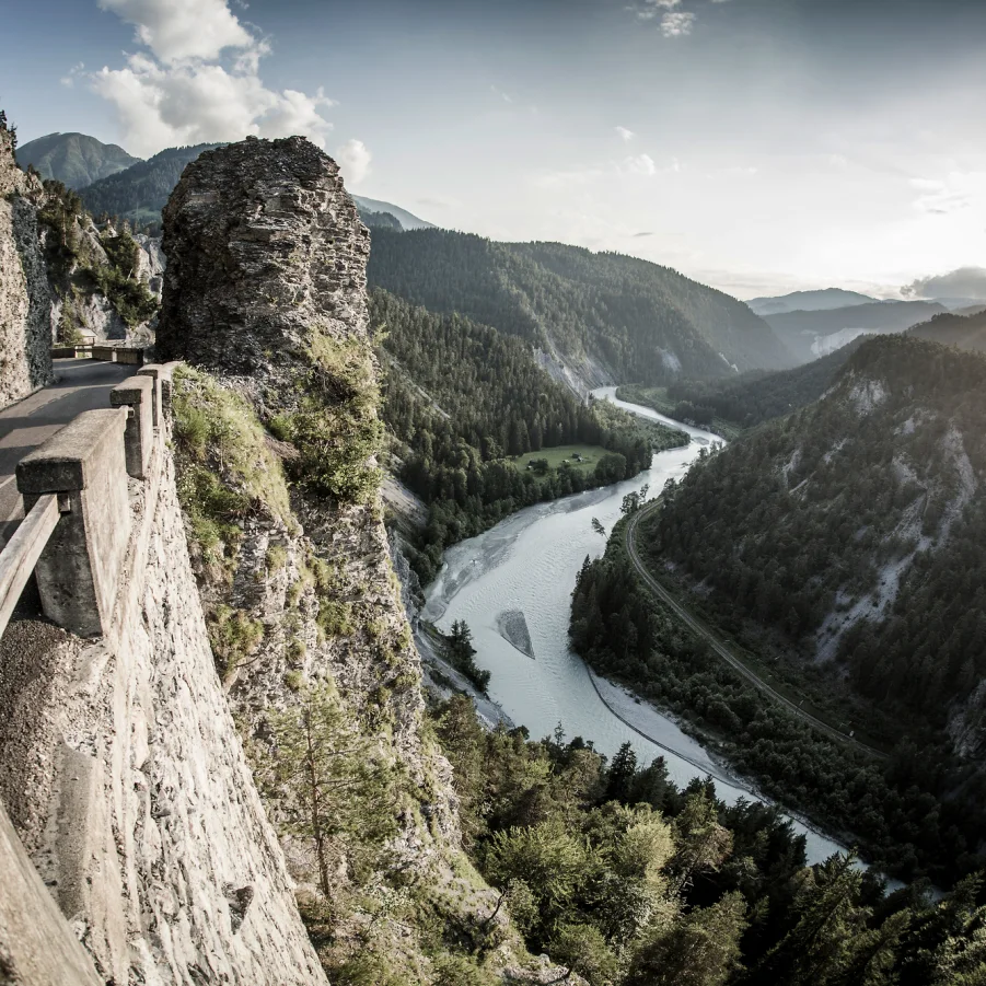 Staunend blickt man auf die wilde Schlucht des Vorderrheins, den Grand Canyon der Schweiz. Chur, die älteste Stadt nördlich der Alpen, hat die höchste Restaurant-Dichte. Verweilen Sie einen Moment, bevor Sie weiter dem Verlauf des gemächlich dahin fliessenden Flusses folgen. Am Abend erwartet Sie Maienfeld, die Heimat des bekannten Blauburgunder Weines.