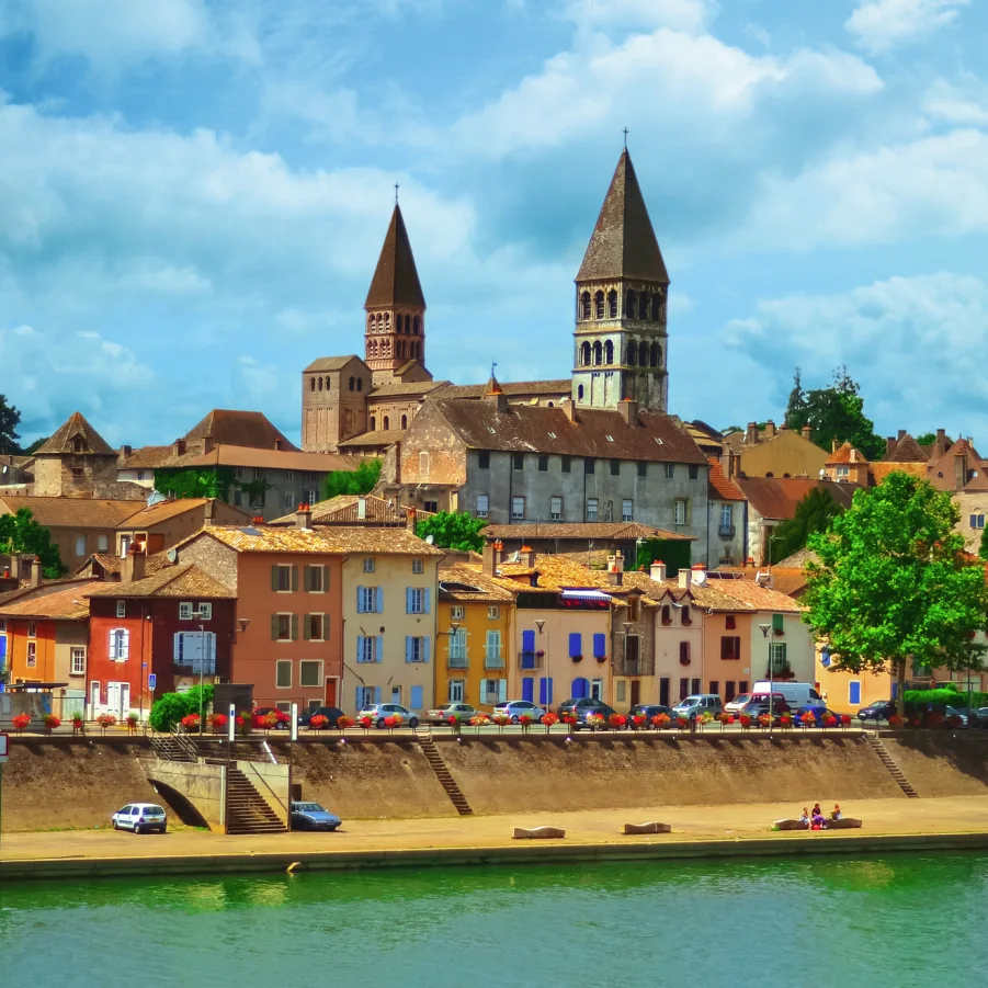 Nach dem Frühstück bringt uns der Bus nach Chalon-sur-Saône, der historischen Handelsstadt am Fluss, wo unsere heutige Velotour beginnt. Auf einem flachen Veloweg folgen wir der gemächlich dahinfliessenden Saône durch eine idyllische Flusslandschaft voller Weiden, Wiesen und kleiner Dörfer. In Tournus legen wir eine Pause ein, um die eindrucksvolle Abtei Saint-Philibert zu besichtigen, ein Meisterwerk der romanischen Baukunst. Weiter geht es durch kleine Dörfer und Weinberge bis nach Mâcon, einer lebendigen Stadt am Südufer der Saône mit südlichem Charme.