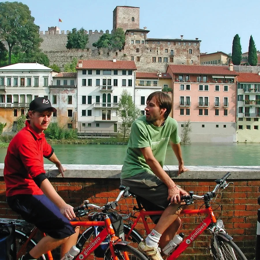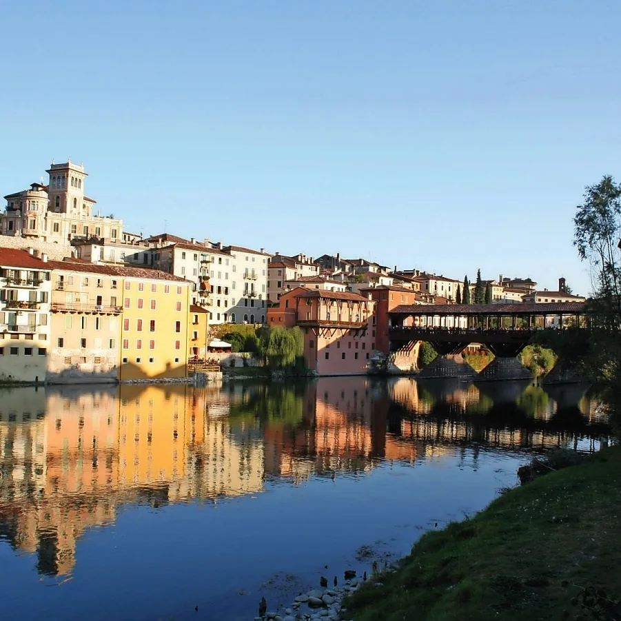 Von Vicenza aus radeln Sie in Richtung Marostica, berühmt für sein Schloss und das Schachbrett auf dem Hauptplatz. Das heutige Ziel ist Bassano, bekannt für den berühmten “Grappa” und für den “Ponte Vecchio”, auch bekannt als die Brücke der Alpini. Dies ist eine historische überdachte Holzbrücke, die den Fluss Brenta im Zentrum der Stadt überspannt.