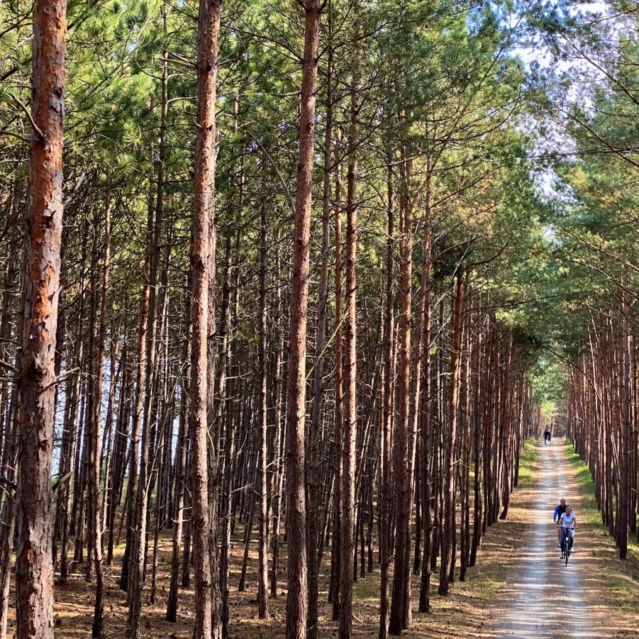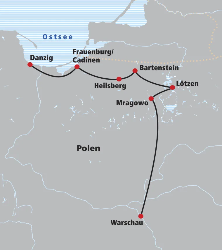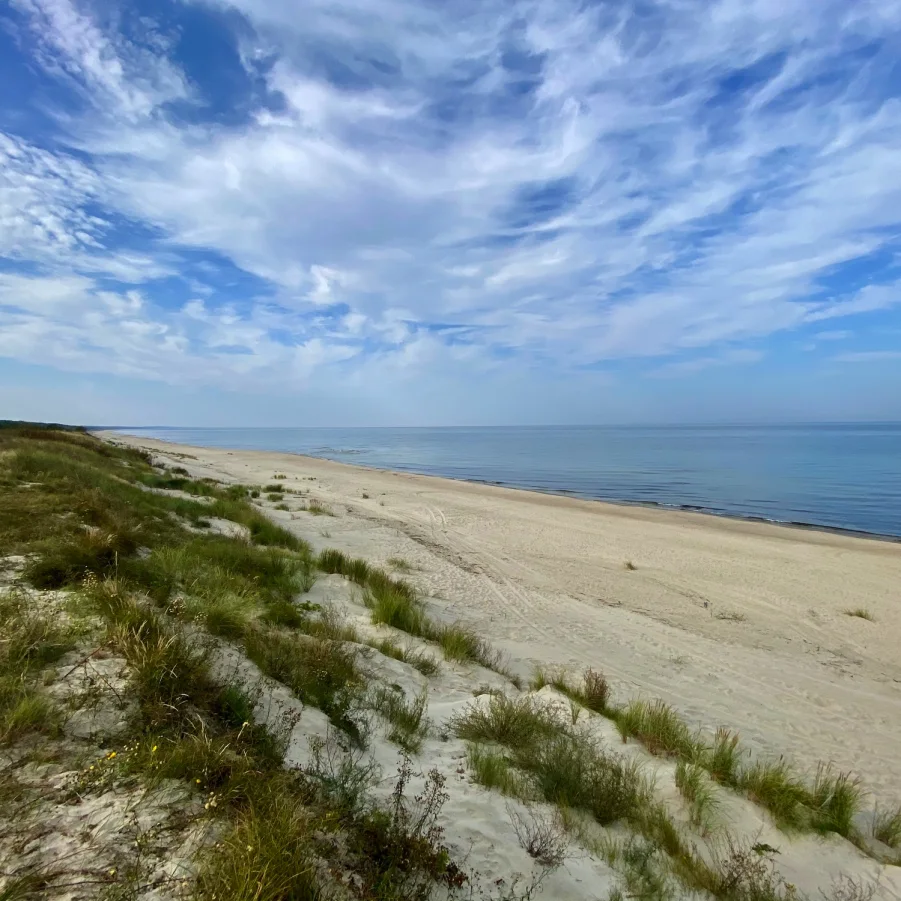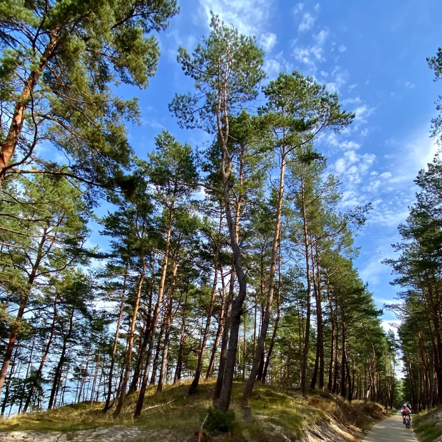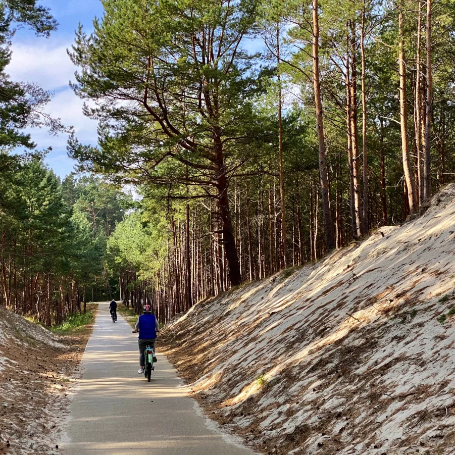 Nach dem Frühstück fakultative Stadtführung in die Vergangenheit der alten Hansestadt Danzig. Danach kurzer Bustransfer zur Weichselmündung. Am Nachmittag führt die Velotour über einen der schönsten Radwege entlang der polnischen Küste auf der Nehrung des Frischen Haff. Auf der einen Seite schöne Wälder und Stille auf der anderen Seite über viele Kilometer wunderschöne Ausblicke auf die Ostsee. Am Nachmittag fahren wir mit dem Schiff über das Frische Haff nach Tolkmicko. Nach der Schiffahrt fahren Sie weiter mit dem Velo in das malerische Dorf Kadinnen/Kadyny, einstige Sommerresidenz von Kaiser Wilhelm II.