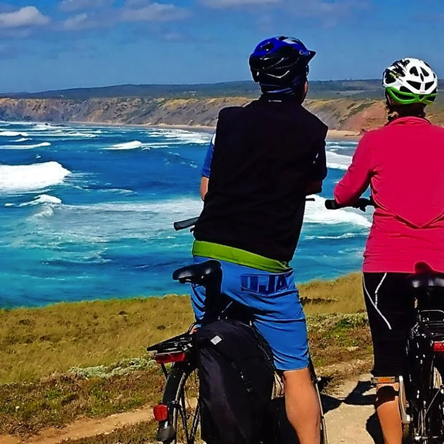 Sie radeln durch die friedliche Natur mit der verschiedenen und einzigartigen Tier- und Pflanzenwelt. Die Landschaft ist von hohen Klippen, sandigen Buchten und Dünen gekennzeichnet. Sie erreichen Aljezur, ein kleines Küstendorf mit den typischen Häuser aus der ländlichen Architektur der Algarve. Auf dem Gipfel des Hügels thront eine Burg.