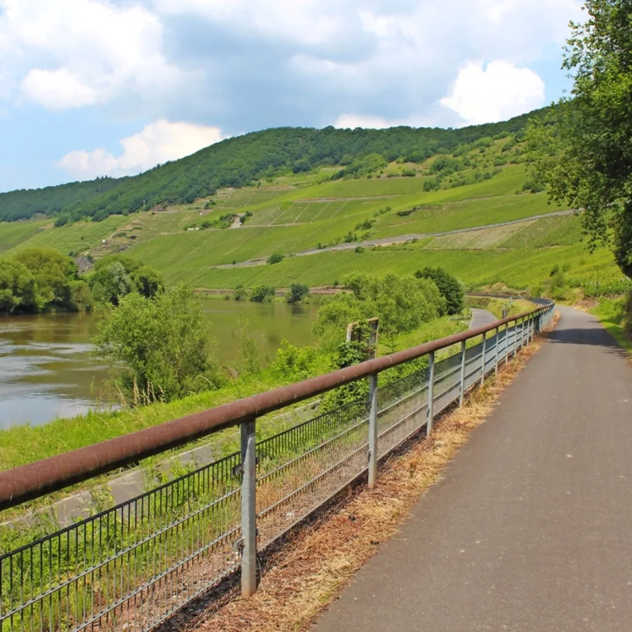 Heute bestimmen die zahlreichen Moselschleifen das Landschaftsbild. Durch malerische Weinberge erreichen Sie Bernkastel-Kues. Vom Radweg aus bereits sichtbar sind die Burg Landshut (rechte Moselseite, aufgrund des steilen Anstiegs nur zu Fuss empfehlenswert; ca. 45 Gehminuten) und die schönen Fachwerkhäuser von Kues. In Kues wurde eine Siedlung aus der Jungsteinzeit ausgegraben, weiters sehenswert sind der von Fachwerkhäusern gesäumte Marktplatz und für Weinliebhaber das Mosel-Weinmuseum inkl. Vinothek. Weiter nach Traben-Trarbach (Ruine Grevenburg, alte Stadtmauer).