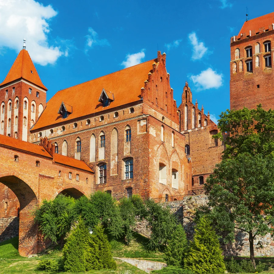 Nach dem Frühstück kurzer Bustransfer nach Kwidzyn/Marienwerder. Danach fahren Sie am Deich entlang mit Blick auf die saftigen Felder und einzelne Gehöfte nach Biala Gora/Weissenberg, wo sich die Weichsel verzweigt – Sie folgen dem rechten Arm, der Nogat und gelangen bald nach Malbork/Marienburg. Einer der Höhepunkte dieser Velotour ist mit Sicherheit die riesige Burg, einst der Hauptsitz des Deutschen Ritterordens.
