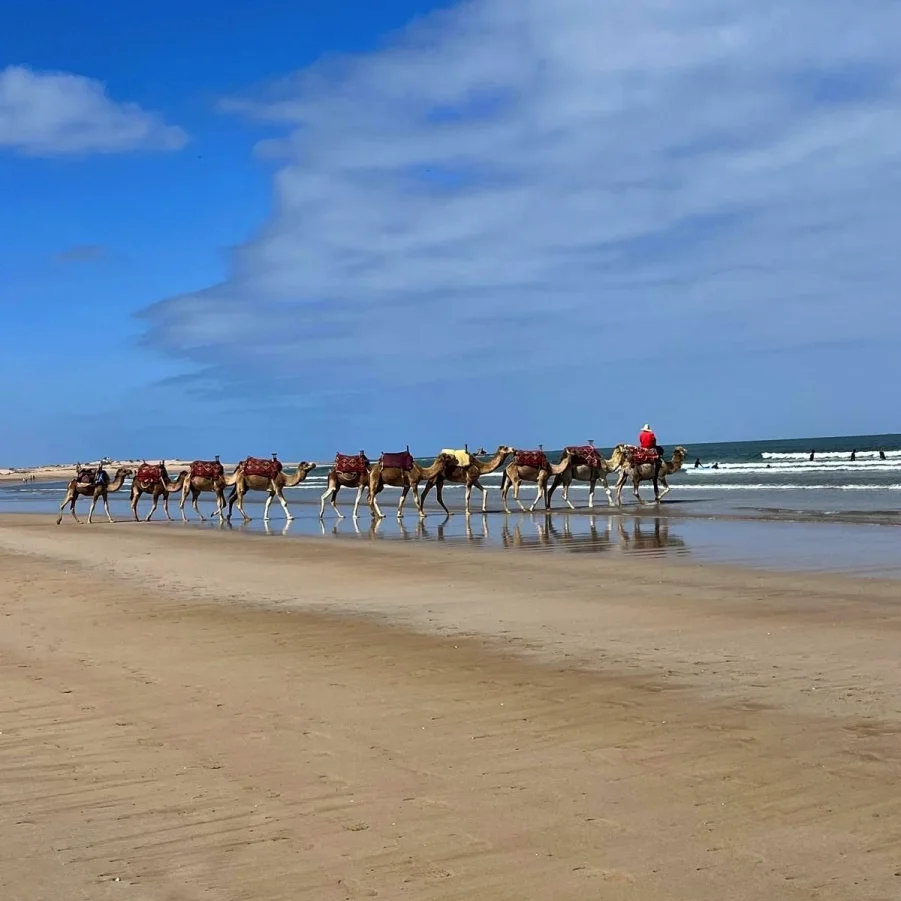 Direktflug nach Marrakesch und Transfer mit eigenem Bus nach Sidi Kaouki bei Essaouira.